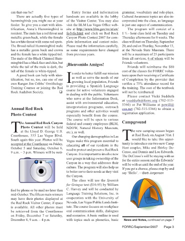 Annual Red Rock interpretation programs, outreach cox.net (702-515-5366) to obtain a