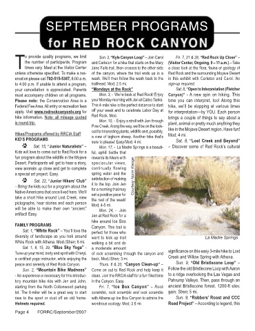 o provide quality programs, we limit Sun. 2, “Kyle Canyon Loop” – Join Carol Fri. 7, 21 & 28, “Red Rock Up Close” –