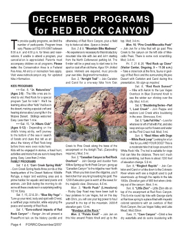 accompany children on all programs. Please 6-miler will be a great way to start new to the Fri. 7, 21 & 28, “Red Rock up Close”