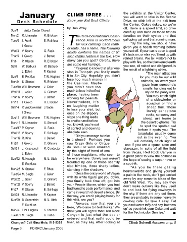 D e s k S c h e d u l e Know your Red Rock Climbs Drive, so stick left at the exit from