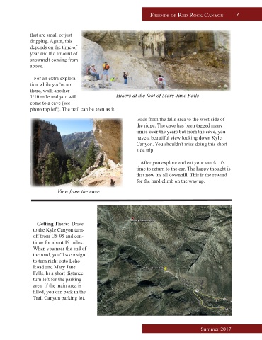 1/10 mile and you will Hikers at the foot of Mary Jane Falls
