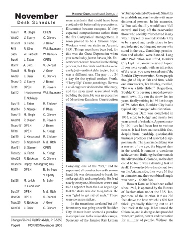 November Hoover Dam, continued from p. 1 Wilbur appointed 69 year-old Sims Ely