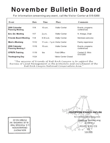 Red Rock Canyon National Conservation Area.” OF FRIENDS P O Box 97 RED ROCK CANYON www.friendsofredrockcanyon.org Blue Diamond, NV 89004 RETURN SERVICE REQUESTED