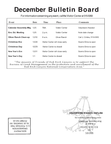 Red Rock Canyon National Conservation Area.” OF FRIENDS P O Box 97 RED ROCK CANYON www.friendsofredrockcanyon.org Blue Diamond, NV 89004 RETURN SERVICE REQUESTED