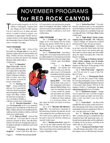love to come to Red Rock for a Carol on a hike up an old road, Sat. 8, “Fall at First Creek” - (Ages12+)