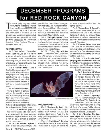 programs. Please note: the Conservation to Red Rock Canyon with your 2-6 year olds trail. Some minor scambling and brush are