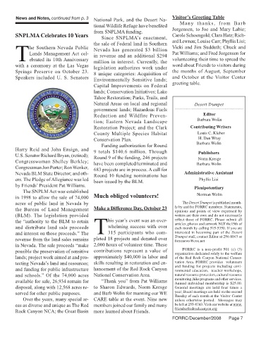 tecting Nevada’s land and resources; skills resulting in restoration and en- vation Area. FORRC provides volunteers