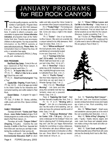 www.redrockcanyonlv.org. Please Note: the ○ Sat. 4, Willow and Beyond - Well find ○