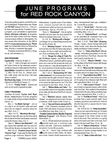Sun. 1, - Kids of all ages are invited to ○ picnic and clean-up! We provide the food; you ○ for the critters of Red Rock Canyon with Ranger