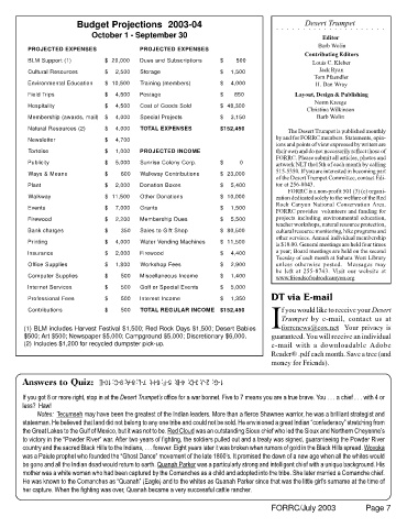 Budget Projections 2003-04 Desert Trumpet