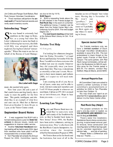 à Tom Pfaendlar wil compile the Annual We’ll miss them at the fee booth and help out. Thanks . . . .