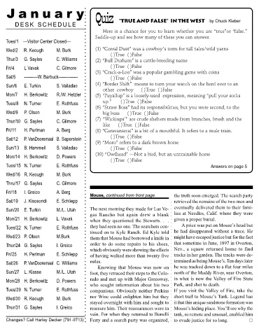 DESK SCHEDULE ○ ○ ○ ○ TRUE AND FALSE IN THE WEST by Chuck Kleber