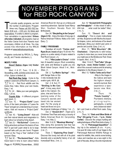 a Sat. 23, - Kid Survival - Come on a ○ ○ Wed. 6 & 20, Moenkopi Morning - ○ ○ eating techniques of Red Rock birds of prey. (*)