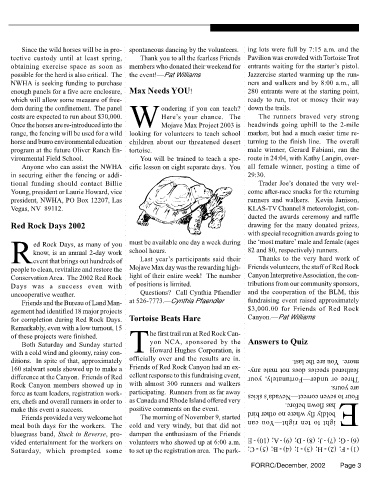160 stalwart souls showed up to make a ○ ○ Friends of Red Rock Canyon had an ex- ○ ○ feathered species does not mate any-