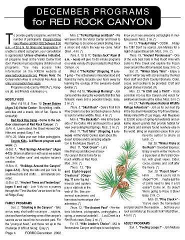 www.redrockcanyonlv.org. Please Note: the ○ 1 p.m.) - The rattlesnake is misunderstood and ○ “warm” winter day with stories read by the Red
