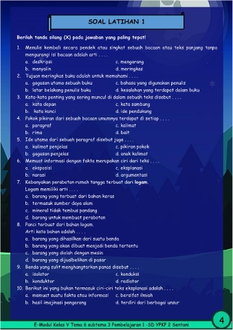 4. Pokok pikiran dari sebuah bacaan umumnya terdapat di setiap . . . .