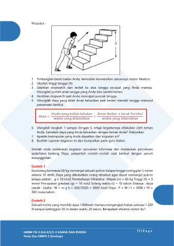 5. Hitunglah daya yang telah Anda keluarkan saat berlari menaiki tangga menurut