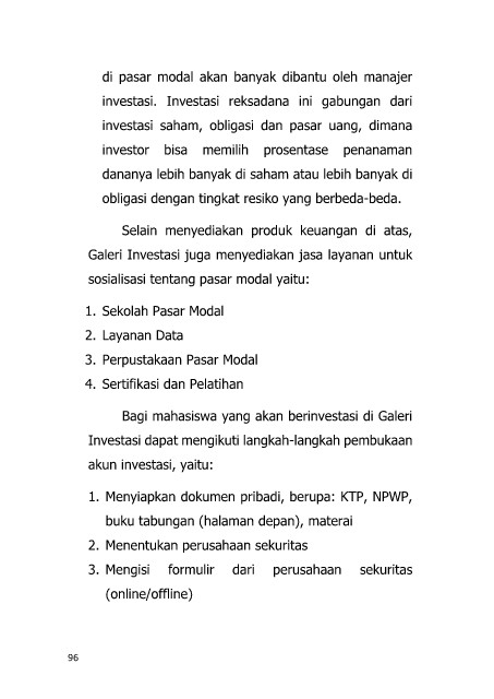 Galeri Investasi juga menyediakan jasa layanan untuk