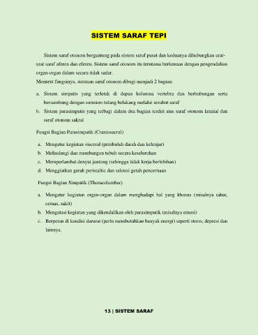 urat saraf aferen dan eferen. Sistem saraf otonom itu terutama berkenaan dengan pengendalian