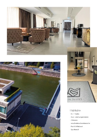 Highlights · 6 + 1 Suites · Kurz- oder Langzeitmiete · 4 Ebenen · verschiedene Eventbereiche · Pool & Whirlpool · Spa-Bereich