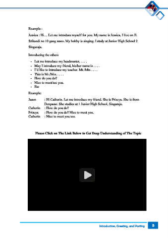 Jessica : Hi… Let me introduce myself for you. My name is Jessica. I live on Jl.