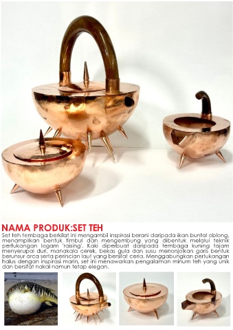 Set teh tembaga berkilat ini mengambil inspirasi berani daripada ikan buntal oblong,