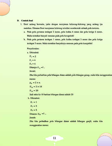 Jadi suku ke-10 barisan bilangan diatas adalah 20