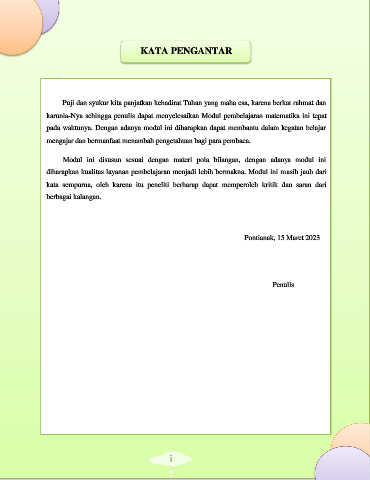 Modul ini disusun sesuai dengan materi pola bilangan, dengan adanya modul ini
