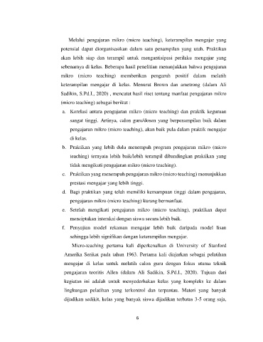 pengajaran mikro (micro teaching), akan baik pula dalam praktik mengajar