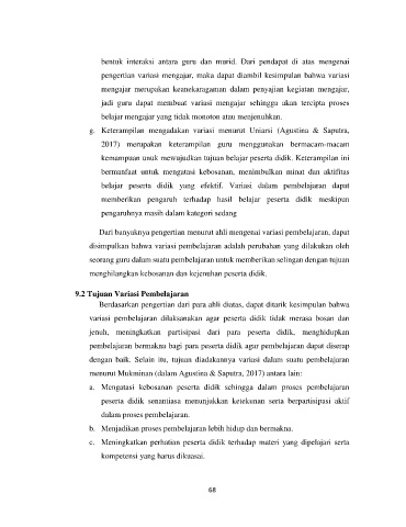 g. Keterampilan mengadakan variasi menurut Uniarsi (Agustina & Saputra,