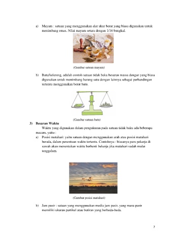 a) Mayam : satuan yang menggunakan alat ukur berat yang biasa digunakan untuk