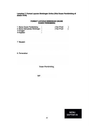 Lampiran 7: Format Laporan Bimbingan Online (Diisi Dosen Pembimbing di