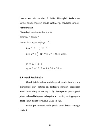 permukaan air setelah 3 detik. Hitunglah kedalaman