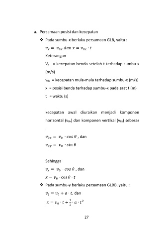 ❖ Pada sumbu-x berlaku persamaan GLB, yaitu :
