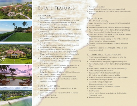 Estate Features                                          •  Alabaster chandeliers