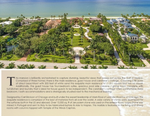 of direct beachfront with 303 feet of white sand this exquisite main residence of 11,511 square foot has no equal.