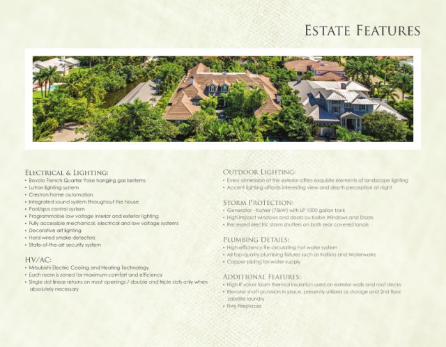 ▪ Fully accessible mechanical, electrical and low voltage systems ▪ Recessed electric storm shutters on both rear covered lanais