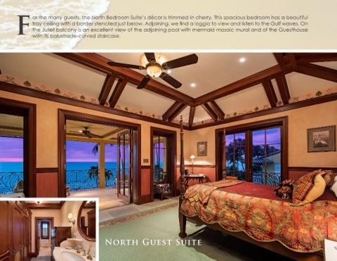 tray ceiling with a border stenciled just below. Adjoining, we find a loggia to view and listen to the Gulf waves. On