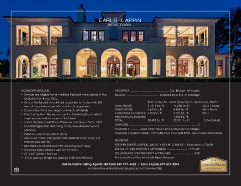Call Exclusive Listing Agents: Bill Earls 239-777-6622 / Larry Lappin 239-571-8247