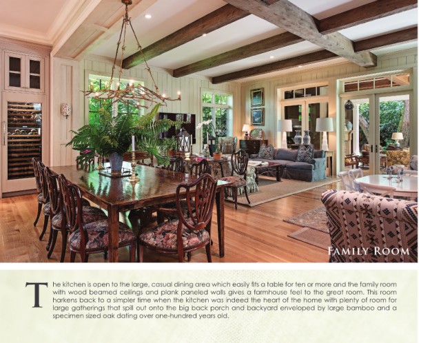 T he kitchen is open to the large, casual dining area which easily fits a table for ten or more and the family room