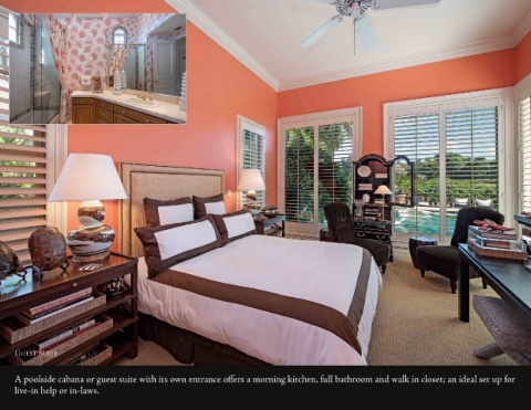 Guest Suite A poolside cabana or guest suite with its own entrance offers a morning kitchen, full bathroom and walk in closet; an ideal set up for live-in help or in-laws.
