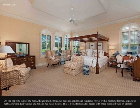 On the opposite side of the home, the ground floor master suite is a private and luxurious retreat with a morning kitchen, a spacious