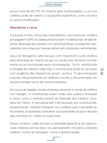 e riscos, como a reversão judicial da liberação dos créditos”, pon-