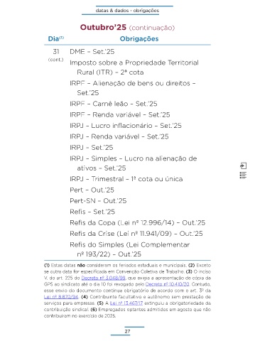(1) Estas datas não consideram os feriados estaduais e municipais. (2) Exceto