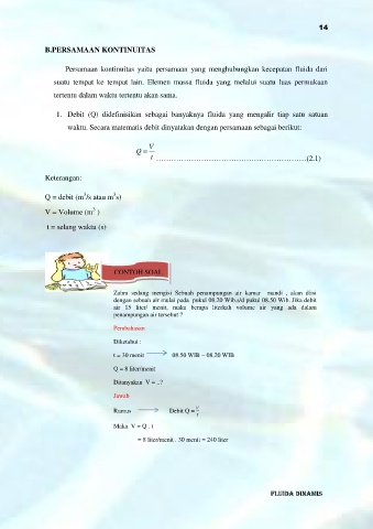 1. Debit (Q) didefinisikan sebagai banyaknya fluida yang mengalir tiap satu satuan