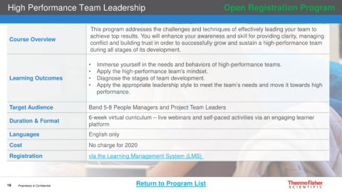 High Performance Team Leadership Open Registration Program