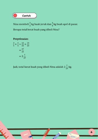 Nina membeli   kg buah jeruk dan   kg buah apel di pasar.