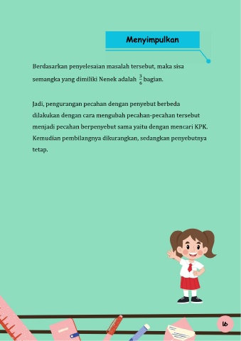 Jadi, pengurangan pecahan dengan penyebut berbeda