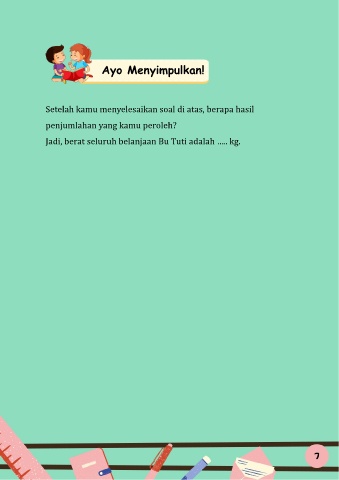 Jadi, berat seluruh belanjaan Bu Tuti adalah ….. kg.