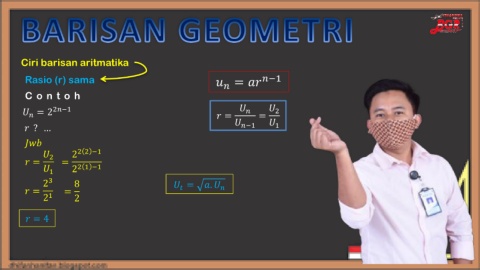 Ciri barisan aritmatika Rasio (r) sama = −1 C o n t o h = 2 2 −1 = = 2 ? … −1 1 2 2 2 2 −1 = = 1 2 2 1 −1 2 3 8 = . = = 2 1 2 = 4